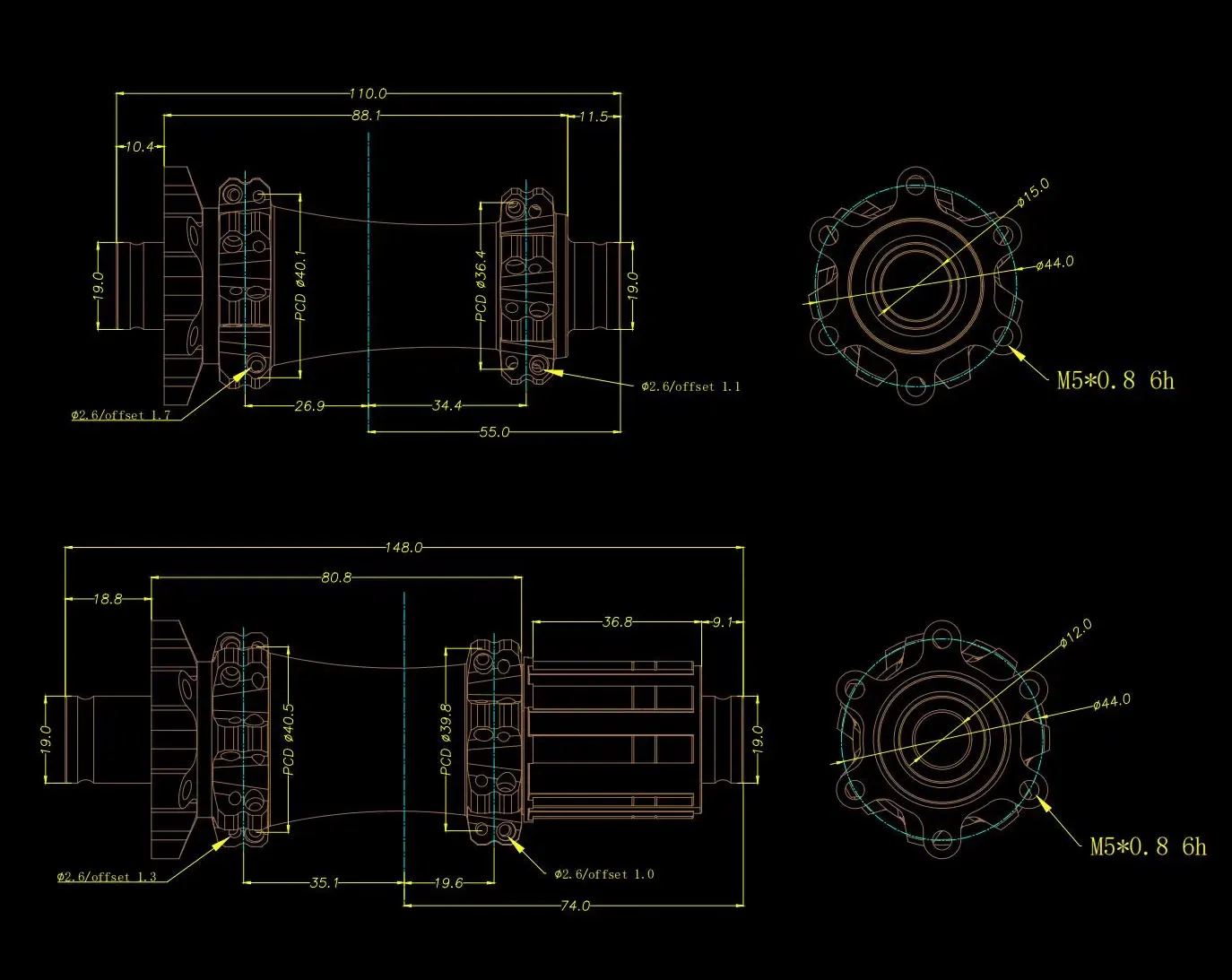 Over-Lock-nut Dimension (OLD):Front 110.0mm / Rear 148.0mm